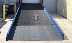 How do I unload this ramp? We recommend using a forklift, heavy-duty wrecker, or crane to safely unload from a flatbed truck. Please plan for this equipment at the time of delivery. Know that more than half our customers take advantage of our turnkey services. Through our national network, we are able to handle everything, including delivery, off-loading, and installation. Click HERE for details.