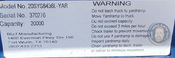 BUYERS: Equipment is sold AS IS. Equipment manufactured by Bluff Manufacturing, Mid-State Ramps, or Quality Material Handling carry a one-year warranty from manufactured date. Beyond that date, and for all equipment built by any other manufacturer, where not under warranty, Buyer assumes all responsibility for any part or labor required upon purchase; for example, anything related to ramp mobility or structural components. Buyer is encouraged to schedule an inspection at site prior to purchase.