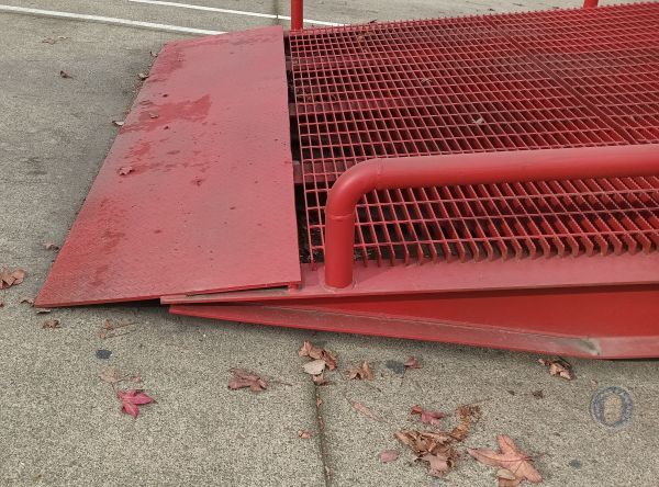The same as “Very Good” but this ramp shows its age and use like a grizzled warrior. Buyer may need to purchase or fabricate a missing mobility device or set of safety chains. General maintenance to hydraulics would be highly recommended (really, for any used ramp to establish a maintenance baseline before using). Some repairs may be in order: dried out gaskets or hoses, a bent section of deck or apron, a few spot welds. Though a little long in the tooth and not the prettiest, it is structurally sound and will provide a reasonable number of additional years of service.
