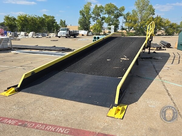 This all-steel portable yard ramp has a 22,000-lb load capacity, 101″ width, and 38′ length. It includes a stationary leg assembly and hydraulic pump. Factories, warehouses, and job sites make great use of this for ground-to-dock or trailer-to-ground loading and unloading. Currently located in Tyler, TX. Easy access across Texas. Freight-friendly to DFW, Houston, Austin, San Antonio, Shreveport. Fast delivery and turnkey services available.
