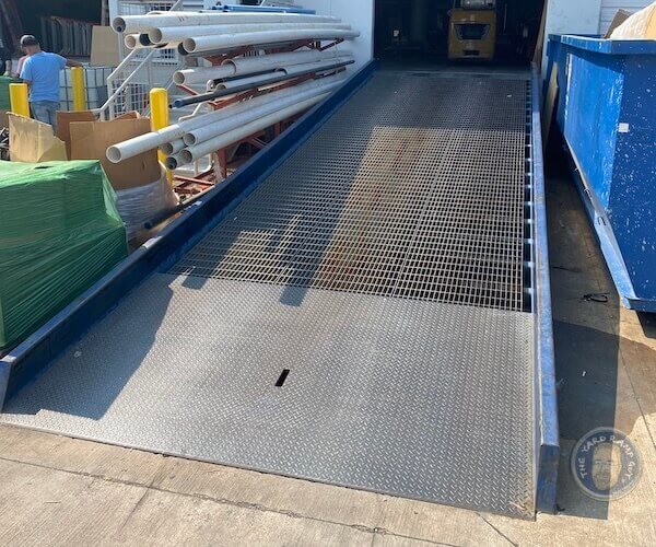 How do I unload this ramp? We recommend using a forklift, heavy-duty wrecker, or crane to safely unload from a flatbed truck. Please plan for this equipment at the time of delivery. Know that more than half our customers take advantage of our turnkey services. Through our national network, we are able to handle everything, including delivery, off-loading, and installation. Click HERE for details.